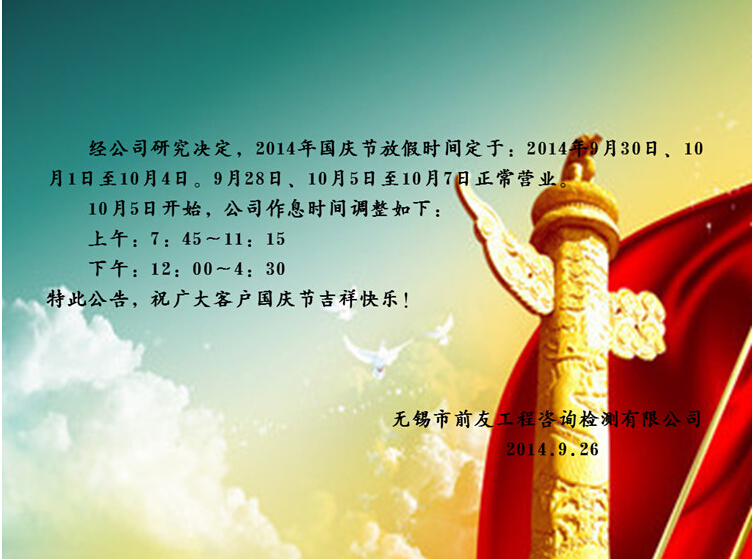 | 關(guān)于國慶節(jié)放假及節(jié)后營業(yè)時間調(diào)整的公告 | ||