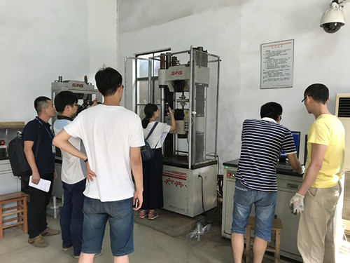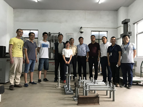 7月1日,工程建設(shè)行業(yè)標(biāo)準(zhǔn)《建筑施工承插型盤扣式鋼管支架安全技術(shù)標(biāo)準(zhǔn)》JG 231修訂版征求意見稿會(huì)議在南京召開,標(biāo)準(zhǔn)編制組全體人員參加了會(huì)議。 標(biāo)準(zhǔn)修編,試驗(yàn)先行。根據(jù)會(huì)議要求,近期,由東南大學(xué)、無錫市前友工程咨詢檢測(cè)有限公司、江蘇速捷模架科技有限公司在前期已進(jìn)行大量試驗(yàn)的基礎(chǔ)上,再進(jìn)行系列盤扣架構(gòu)配件、整架和堆載應(yīng)用的實(shí)驗(yàn)、試驗(yàn)和檢測(cè),為標(biāo)準(zhǔn)選用參數(shù)指標(biāo)和驗(yàn)收要求提供更科學(xué)的依據(jù)。 7月8日,東南大學(xué)郭正興教授等標(biāo)準(zhǔn)主編人員來到無錫市前友檢測(cè)公司,指導(dǎo)盤扣架試驗(yàn),包括連接盤單側(cè)抗剪強(qiáng)度試驗(yàn)、連接盤雙側(cè)彎剪強(qiáng)度試驗(yàn)、連接盤抗拉強(qiáng)度、連接盤內(nèi)側(cè)環(huán)焊縫抗剪強(qiáng)度試驗(yàn)、可調(diào)托撐和可調(diào)底座抗壓強(qiáng)度試驗(yàn)。江蘇省土木建筑學(xué)會(huì)秘書長(zhǎng)王華研究員級(jí)高級(jí)工程師也親臨現(xiàn)場(chǎng)給予指導(dǎo)。
