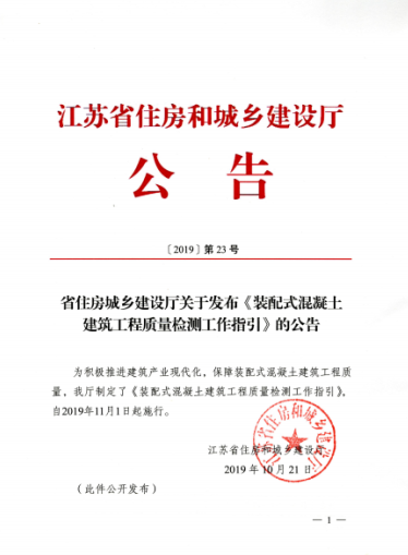| 信息窗:省住建廳發(fā)布《裝配式混凝土建筑工程質(zhì)量檢測(cè)工作指引》 | ||