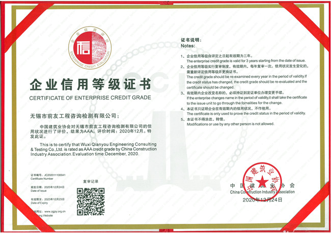 近日,公司收到了中國建筑業(yè)協(xié)會(huì)頒發(fā)的“關(guān)于公布2020年度建筑業(yè)AAA級(jí)信用企業(yè)(檢測(cè)機(jī)構(gòu))的通知”和建筑業(yè)AAA級(jí)信用企業(yè)證書。 為加快推進(jìn)社會(huì)信用體系建設(shè),促進(jìn)企業(yè)誠信經(jīng)營(yíng),中國建筑業(yè)協(xié)會(huì)質(zhì)量管理與監(jiān)督檢測(cè)分會(huì),根據(jù)“關(guān)于開展2020年度建筑業(yè)AAA級(jí)信用企業(yè)(檢測(cè)機(jī)構(gòu))評(píng)價(jià)推薦工作的通知”要求,本著公開、公平、公正的原則,通過檢測(cè)機(jī)構(gòu)自愿申請(qǐng)、各省市相關(guān)單位推薦,在相關(guān)網(wǎng)站上排查復(fù)核,專家綜合評(píng)價(jià)及網(wǎng)上公示,確定北京環(huán)安工程檢測(cè)有限責(zé)任公司等129家檢測(cè)機(jī)構(gòu)為2020年度建筑業(yè)AAA級(jí)信用企業(yè)(檢測(cè)機(jī)構(gòu)),現(xiàn)已發(fā)文公布。 誠信企業(yè)的建設(shè)永遠(yuǎn)在路上。無錫市前友工程咨詢檢測(cè)有限公司將以此作為加快公司高質(zhì)量發(fā)展的新動(dòng)力,進(jìn)一步加強(qiáng)信用體系建設(shè),練實(shí)內(nèi)功,優(yōu)化服務(wù),積極履行社會(huì)責(zé)任,為促進(jìn)行業(yè)持續(xù)健康發(fā)展做出新的貢獻(xiàn)。