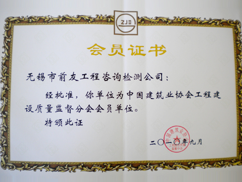 | 賀前友檢測(cè)公司吸收為中建協(xié)質(zhì)量監(jiān)督分會(huì)會(huì)員 | ||
